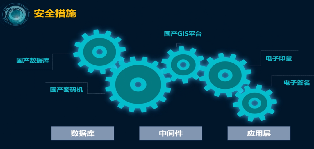 严格按照相关规定,采用进入国家信创名录的国产数据库管理和国产GIS管理平台(如图12)。并接入硬件密码机,对涉密和敏感数据,必须通过密码机进行加密后,方可进行存储和传输,通过以上技术路线创新,有效保障数据安全及系统的平稳可靠运行,为山东省政务信息化的安全建设和运营树立示范。