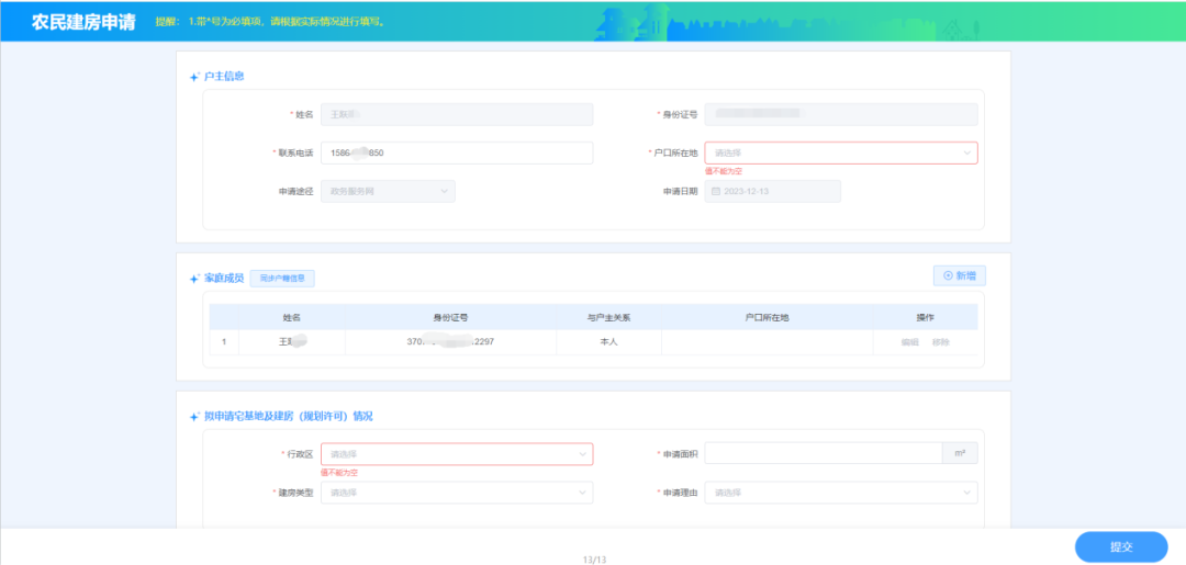 图10 山东省政务服务网农户申请界面