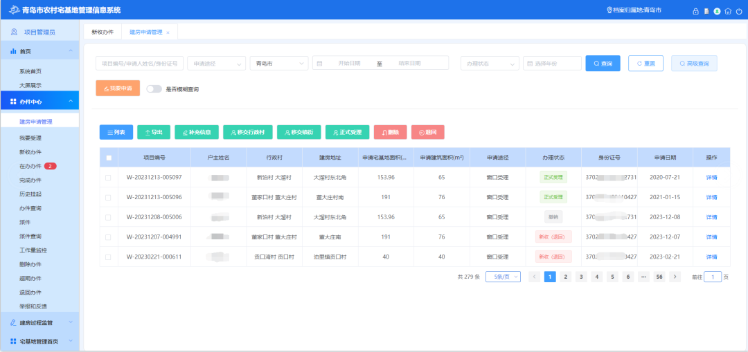 打通青岛时空大数据平台、不动产登记系统、行政审批局相关系统,利用爱山东、山东通等多跨协同通道,实现农民建房审批网上办、掌上办,实现农村“人、户、地、房”信息一体化,实现对宅基地申请、审批、发证、批后监管、不动产登记推送等全流程管理。