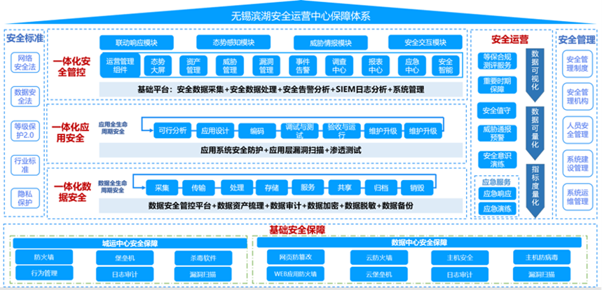 一方面提升无锡市滨湖区安全防护等级,促进新城产业数字化转型。全面提升无锡市滨湖区重要单位和业务系统的安全防护等级。另一方面提升新城网络安全统筹管理能力。建立区级的安全运营中心,构建全域安全大脑,形成区域级的网络空间安全预警监测体系。积极响应“全天候、全方位”感知网络安全态势的大战略。