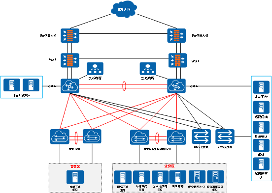 为通过电子政务外网接入的各委办局工作人员提供网络交换,访问电子政务相关业务系统;为运维管理人员提供带外的运维管理交换通道。