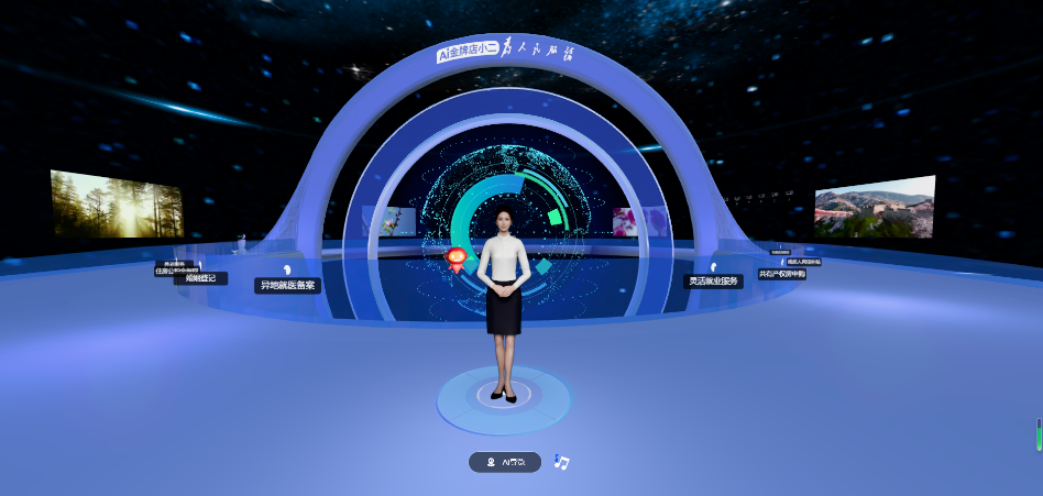 “平平”提供在线服务的交互端共有5种,已经对外提供服务共有3种,分别是PC交互窗口以昌平区政府网站为入口(如图2)、微信端(如图3、图4) 、手机端。在建当中有两种分别是元宇宙端(如图5)和实体数字人端。目前主流应用频率靠前的为微信端和PC端,应用比重达95%,随着手机端的不断完善预计手机端应用量也会逐步提升。