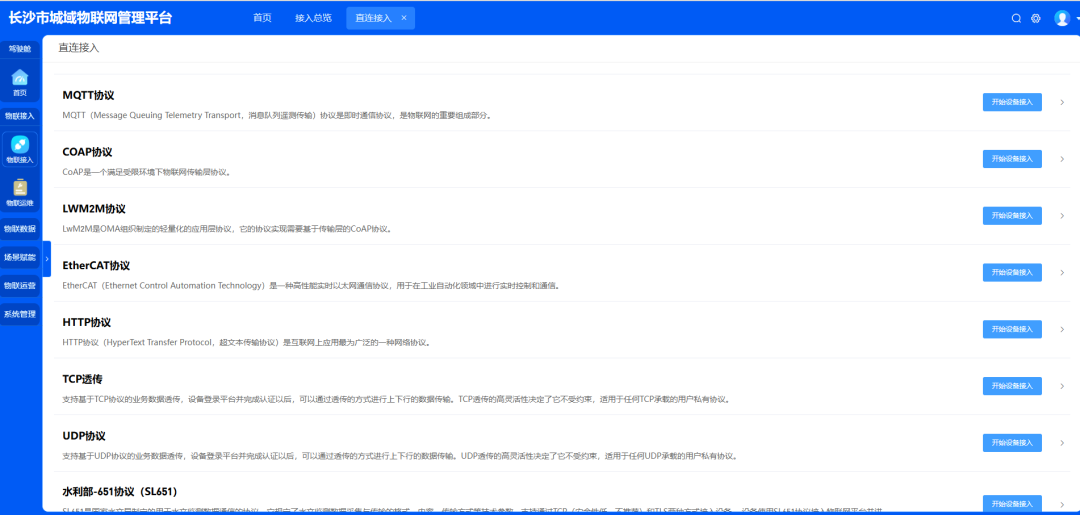 长沙市城域物联网管理平台:作为物联感知数据的总汇聚、感知能力供应总平台,提供物联感知数据加密脱敏、算法、预警模型等基础能力供应。