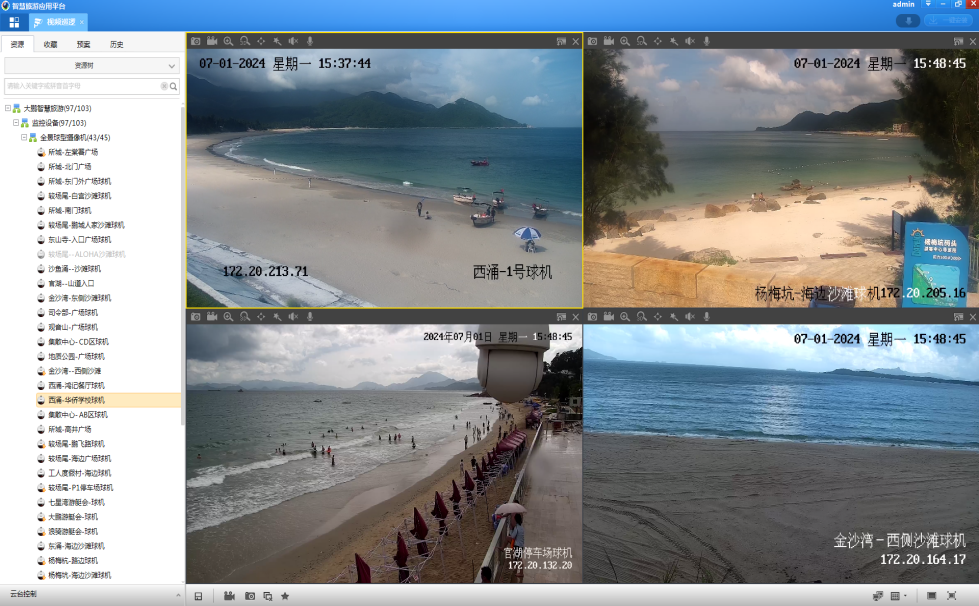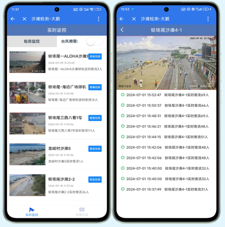 在沙滩管理方面,AI算法感知极端气候条件下的沙滩人员滞留事件并及时预警推送到办事处工作人员手机端,有效应对恶劣天气带来的临时撤离需求。