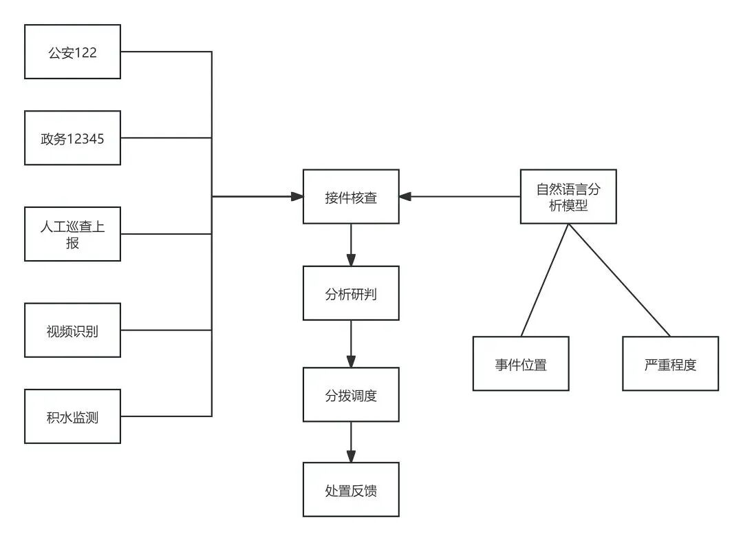 构建覆盖“事前-事中-事后”全周期的智慧应急体系。事前通过模型预警与风险评估实现精准布防;事中依托多渠道险情收集与智能决策支持实现高效调度(如图9所示);事后基于大数据复盘生成“一点一案”治理策略。推动城市防汛从被动响应向常态化风险管控转型,系统性提升城市水安全韧性。