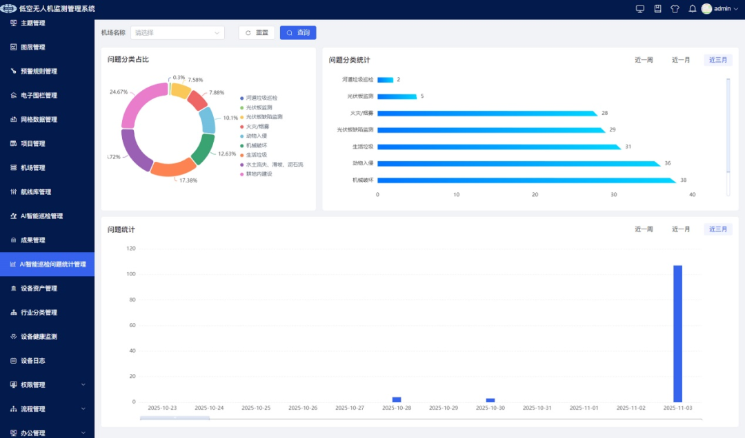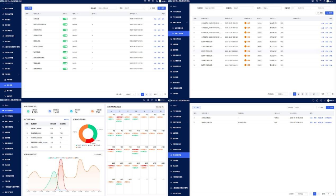 整合权限管理、飞行任务看板、数据采集整合、监测成果归档等核心能力,构建“任务发起-数据采集-成果管理-权限管控”全流程支撑体系。权限管理模块按角色分级授权,保障数据安全与业务规范;飞行任务看板助力管理人员掌握全局、调度资源;平台依托后台管理系统优化数据组织逻辑,对多类型数据分类归档、结构化存储并实现监测成果追溯共享,通过标准化数据管理确保数据质量,简化管理链路、降低协同成本,如图7所示。