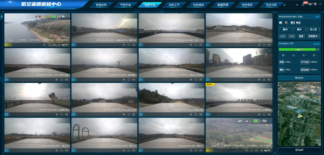 构建低空无人机集群调度与统一指挥机制,通过平台化任务分配与智能航线规划,如图5所示,实现多架无人机协同作业与多任务并行执行。针对生态巡查、公共安全、城市治理等不同业务需求,系统可根据任务优先级与区域范围动态调度飞行资源,同步开展巡检、取证与数据采集,显著提升单位时间覆盖效率与应急响应能力。相较传统单机作业模式,有效减少等待与重复调度成本,实现低空资源集约化利用和治理效率整体提升。