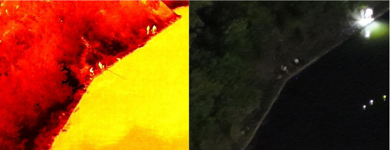 低空政务巡检有效弥补了基层监管力量不足的问题,相比传统方式,无人机巡检覆盖效率提升约80%,综合成本降低30%以上,实现由低频抽查向高频常态化监管转变。以防溺水为例,在重点水域实施无人机巡查后,现场发现并处置安全隐患123处,累计劝离涉险人员586人次,响应率达89.7%,推动风险防控由事后处置前移至事前预防,有效降低了溺水事故发生风险。在禁捕禁钓监管中,通过无人机巡查累计发现违规行为42起,热红外与可见光协同感知,如图9所示,为执法部门精准打击提供了可靠依据,增强了政策执行的震慑力和公信力。