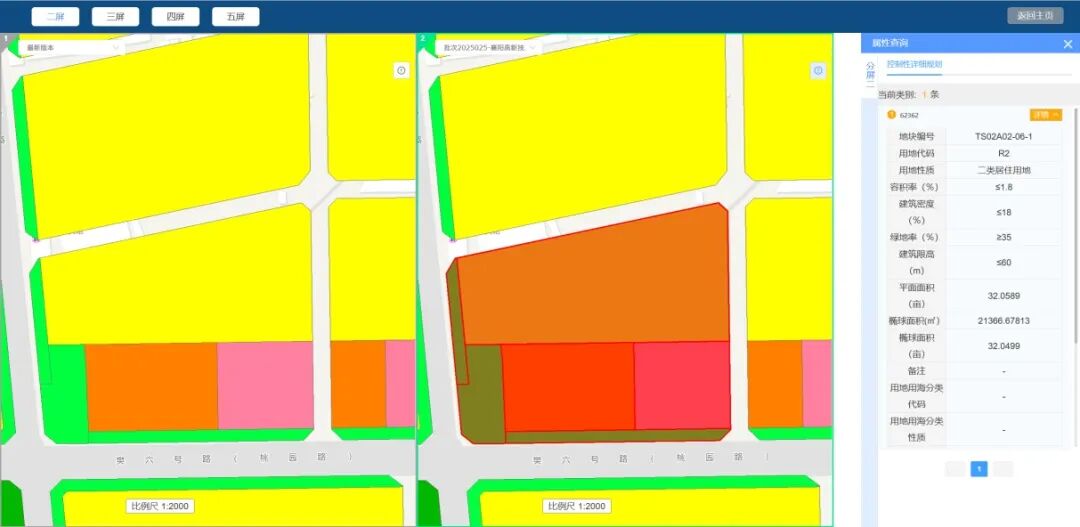 完善现有控规成果入库流程,支撑控规历史库建设。支持点选或框选地块范围,查找地块控规调整记录,直观的了解当前区域的控规变化情况。