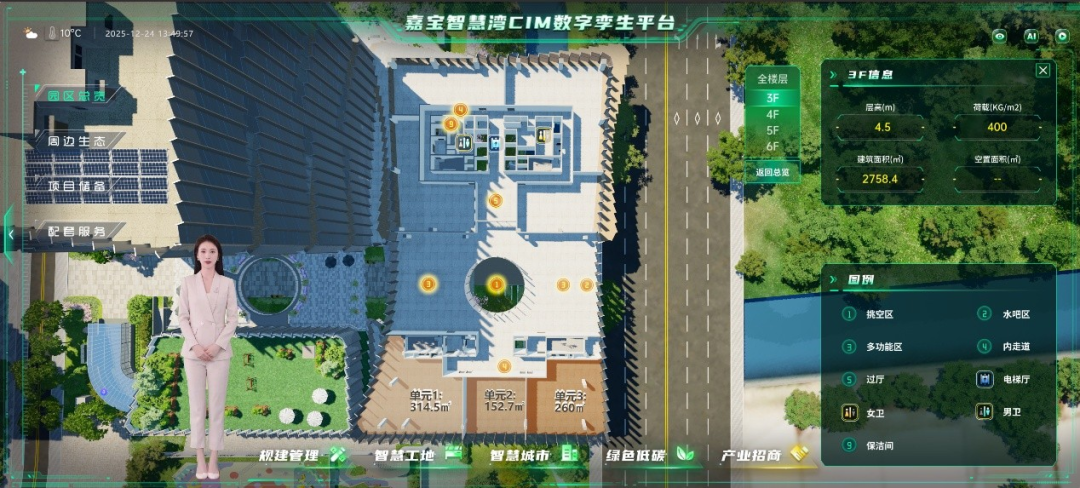 运营阶段:对“即将完工项目”和“未来实景”进行模拟,为后续的楼宇管理、能源优化、产业服务提供基础。