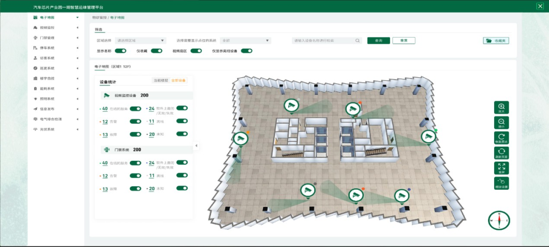 2.5 统一数据汇聚与“一张图”决策:平台作为“数字底座”,将散落在各部门的数据统一汇聚、关联和分析,最终在三维场景中以“一张图”的形式呈现。管理者可以“一屏观全局”, 快速掌握从宏观产业布局、中观建设进展到微观工地细节的全方位信息,有效支撑跨部门协同研判与科学决策。