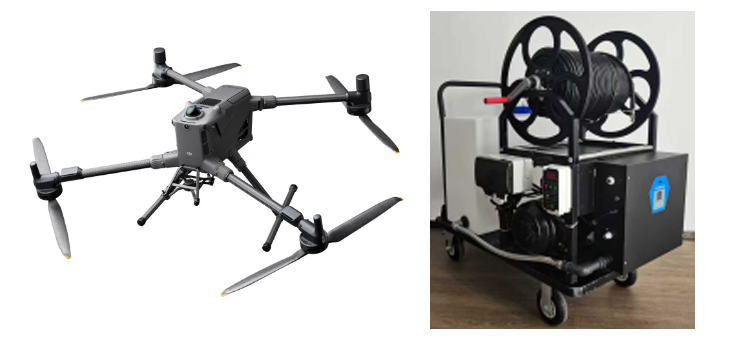图1 大疆M400无人机(左)和双频智控地面集成系统(右)